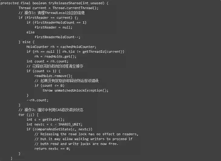 读锁的释放主要是tryReleaseShared(arg)函数,因此拆解其步骤如下: