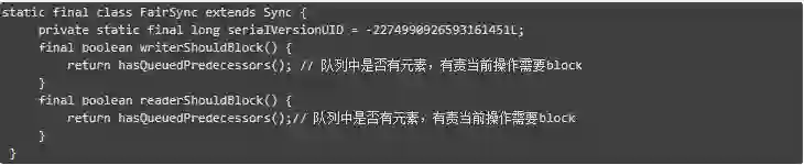 公平下的Sync实现策略是所有获取的读锁或者写锁的线程都需要入队排队,按照顺序依次去尝试获取锁。