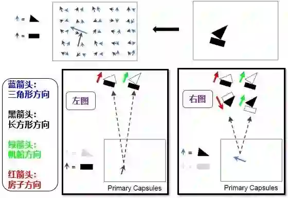 右图:平移前的 2 和平移后的 2 的表示里含有位置这个信息 (比如用 Capsule),这样我们不但能识别出 2,还能判断出 2 在图像中的位置。
