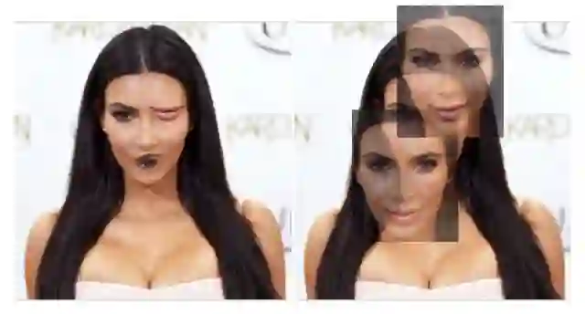 还记得引言中正常的卡戴珊的图像 (左图) 吗?从嘴和左眼推出脸的位置是相似的,因此得出结论它们属于同一个脸。