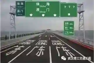 第二个照片,这张也是港珠澳的,整个信息板上到底想表达什么内容并不清晰。首先,上面珠海澳门29公里,右边横过来广州180公里,然后广东界,底下又写了广东,画了个箭头,要告诉其他人什么内容?非常不清楚。其实这里面哪些东西是必要的,哪些东西是不必要的,应该区分一下,走过信息板的时候传达了什么信息,这就是做交通工程的一个大项。