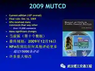 从1935年第一版MUTCD出版,到现在已经更新了10个版本,目前是使用的2009版本。