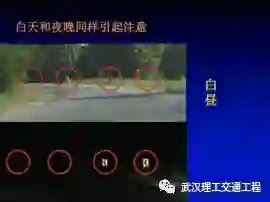 这个就要求我们晚上应该用什么东西,要白天晚上的可视性,不同时段都是应该看上去一样的,白天的看上去黄底黑字的形状,和晚上看上去不能有区别,不能说把晚上看上去就不同的颜色了,这是不可以的。