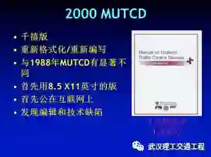 现在就是说刚才说要更新,到了2012年就说要再出一版新的,后来也没出来。这本书,你可以在网上免费找到,百度上打MUTCD,百度能给你指引到美国联邦公路局的网站上去,美国联邦公路局在咱们这儿是打得开的,没有锁,因为美国联邦政府出的文件、书都是免费的,像徐老师刚才介绍另外的几本书,除了这本以外那个绿皮书还有HCM,应该是美国公路管理协会,民间组织,是一个非营利组织,它的所有的出版物,都是要买的。这个是联邦公路局出的,要是想买它的纸质版,要60美元,下载是免费。