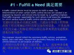 工程师叫道路交通工程师,必须很清楚这些东西。每个东西是干什么用的?应该放置在什么地方?它的定义是什么?一般来说,每做一件事都要去工程调查,你每设立一个标牌,每设立一个标线的时候,信号灯那就更不说了,都要有一定相应的数据来支持,数据不一定说要花了多少钱,去采集了什么数据,哪怕在这停了十分钟拿个照相机照了,作为基本数据来要求,这都是可以的。所以要求工程师必须有好的培训,好的知识来做这些东西。