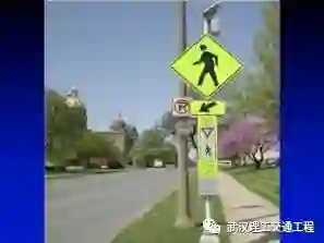 说到停车,那咱们再接着说停车的基本要求,满足不同类型的人的要求,有不同的各种各样的行人,像这种是现在最近七八年造的最多的就把这个行人突出来,然后我在这设立行人过街的警告标志。国内好像现在没做成这样,这个应该是就是两米以上。这就是安全,这个第一改善视线,第二缩短了人暴露在危险的场景的距离。这个现在大量做这个东西,有条件就这么去做,因为对行人的这种无控制,没有控制的人行横道,他能很好地看见两边来车,所以这个将来中国怎么用,咱们再慢慢推广。