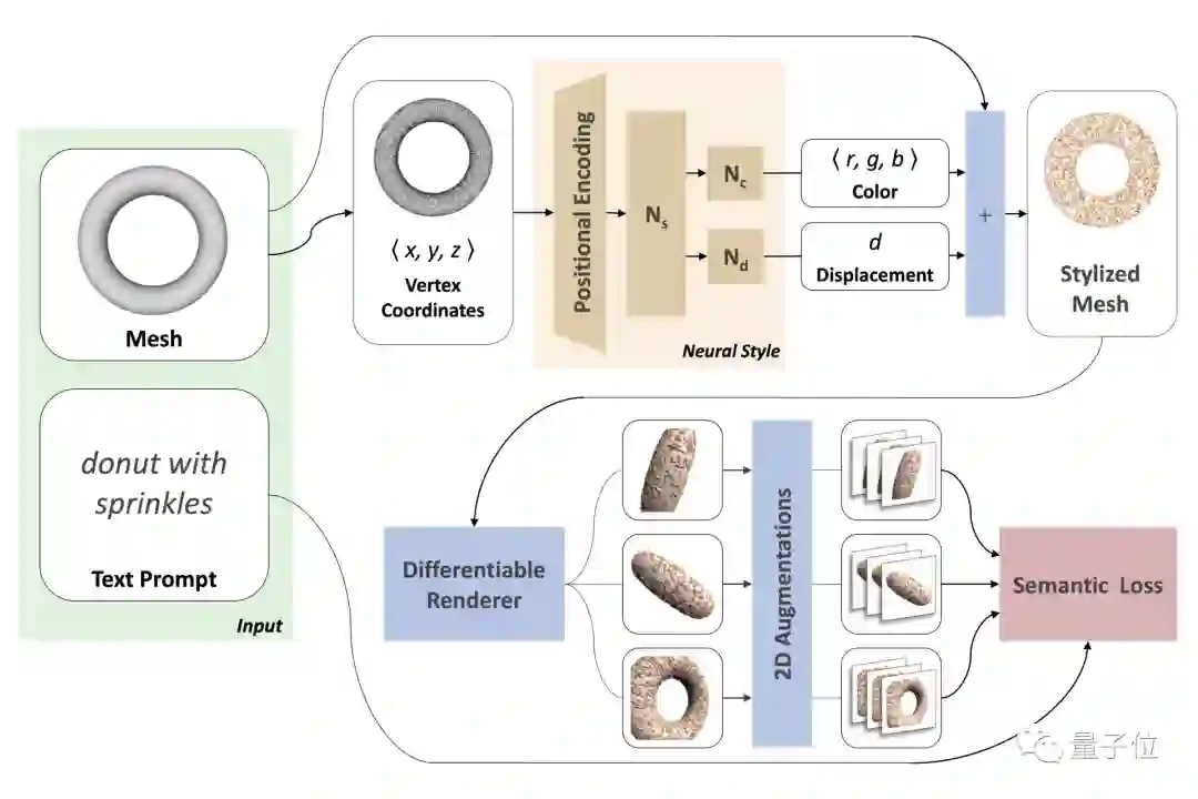 这就是用一个专门给3D物体“换皮肤”的模型Text2Mesh做出来的,由芝加哥大学和特拉维夫大学联合打造。