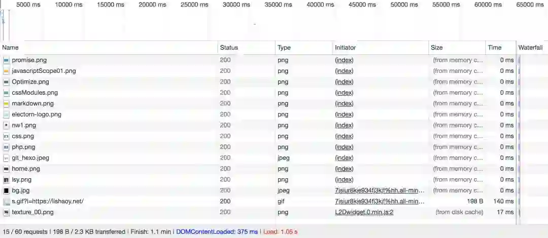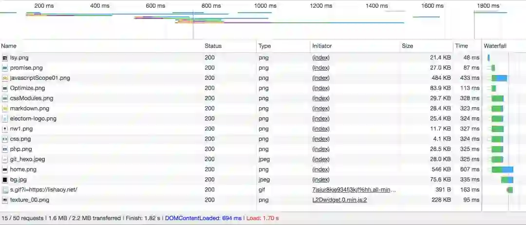 以上是 lishaoy.net 清除缓存后的首页请求速度。