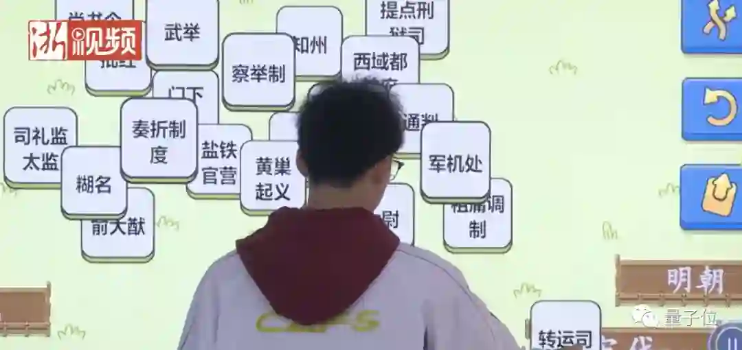 学生一个一个上台,或两两对战,徐娇娇就在他们玩游戏的过程中,仔细考察学生们对历史知识的掌握情况。