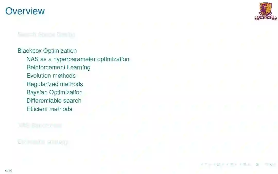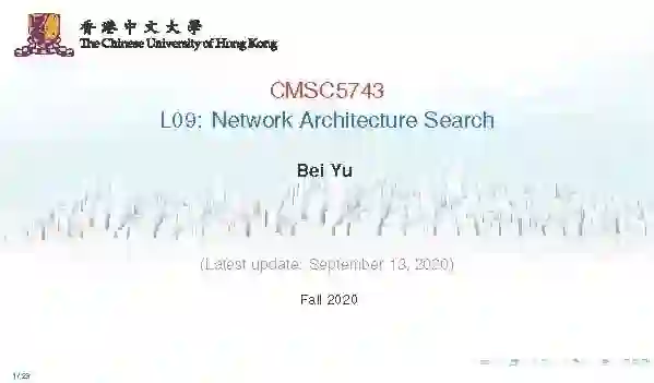 香港中文大学Bei Yu开设的深度学习课程,这一讲重点对神经架构搜索进行讲解。