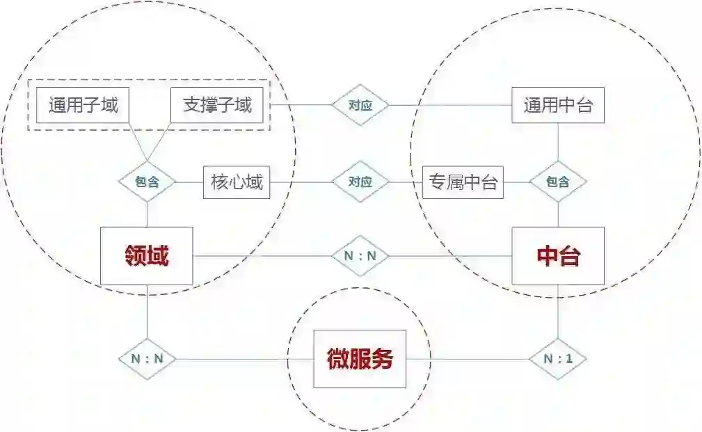 中台、领域以及微服务属于不同层面的内容,稍作分解我们理清他们之间的关系。