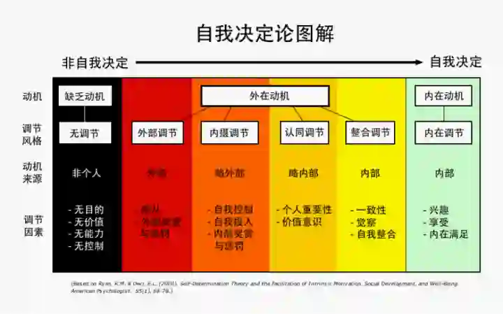 为了进一步理解“外在动机”和“内在动机”,我引用了Edward L. Deci的自我决定论,来跟大家解释。