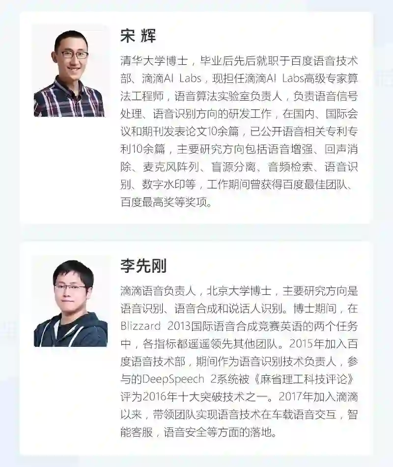 近期,滴滴AI Labs高级专家算法工程师&语音算法实验室负责人宋辉博士、滴滴语音首席算法工程师&语音负责人李先刚博士联合推出了语音信号处理在线课程。帮助更多的有志于智能语音领域科研/工作的伙伴们,快速学习并掌握语音信号的常用处理算法,同时了解深度学习在语音信号中的应用。
