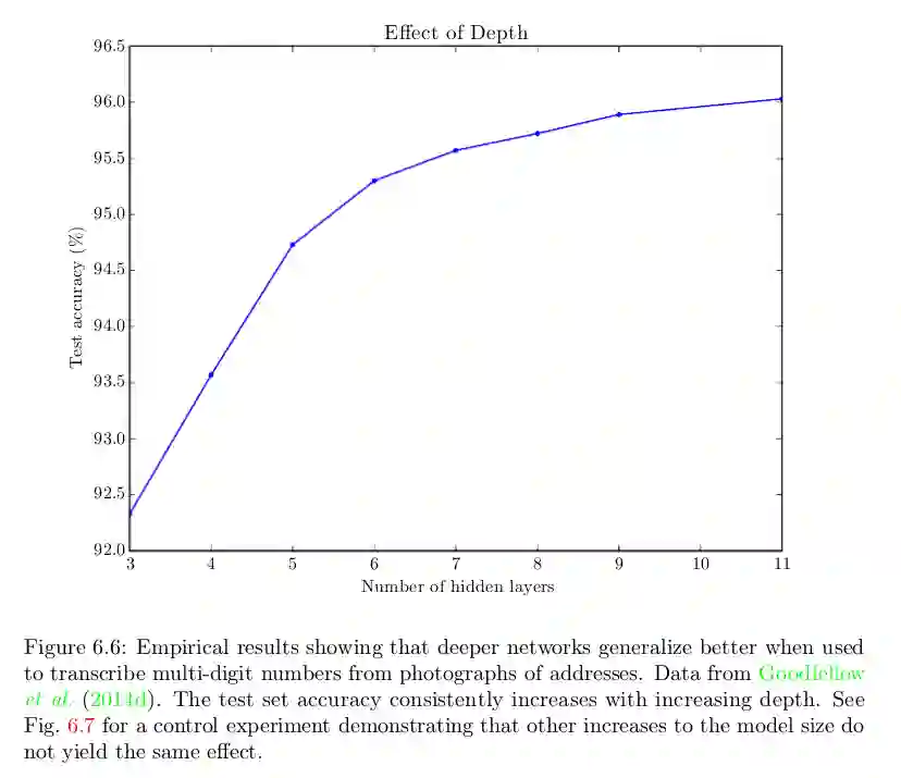 好吧,一个朴素的回答是因为它们效果更好。下图是Goodfellow等著《深度学习》中的一张图片,表明对某个特定问题而言,隐藏层越多,精确度越高。在其他许多任务和领域中同样可以观察到这个现象。