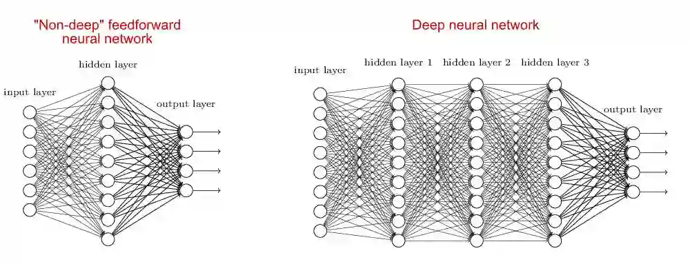 那么到底多少层算深度呢?这个问题可能没有一个明确的答案。某种意义上,这个问题类似“有多少粒沙子才能算沙丘”。但是,一般而言,我们把有两层或两层以上隐藏层的网络叫做深度网络。相反,只有一个隐藏层的网络通常被认为是“浅度网络”。当然,我怀疑我们也许会经历网络层数的通货膨胀。十年之后,人们也许会认为10层隐藏层的网络都是“浅度网络”,只适合幼儿园小孩做练习用。非正式的说法,“深度”暗示应对这样的网络比较困难。