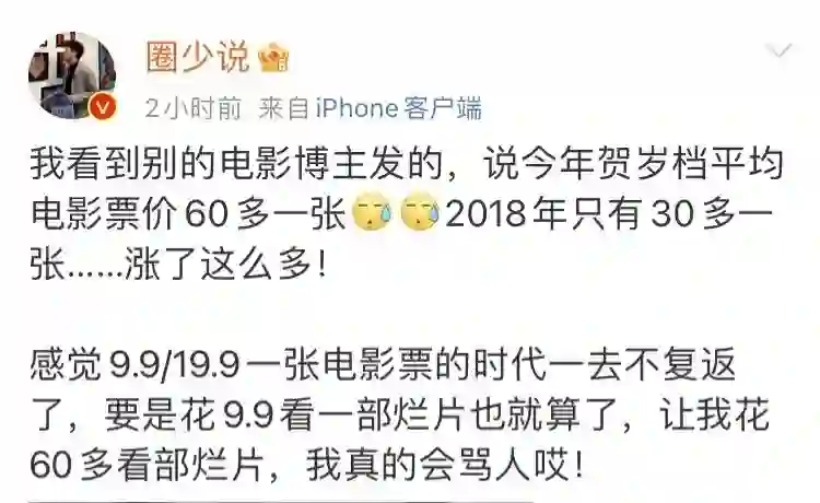 短短几年间,中国电影市场飞速发展,但观众的心理认知更新速度却没能匹配上。票补的消失所造成的心理落差,也在今年初一的舆论情绪中可见一斑。尽管大家从理智上都知道大额票补的时代已经离开我们很多年了,但每到票价飞涨的时节,观众总会怀念起19.9元的时代。