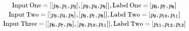例如,如果input_size = 3和num_steps = 2,我们的第一批的训练样例如下所示: