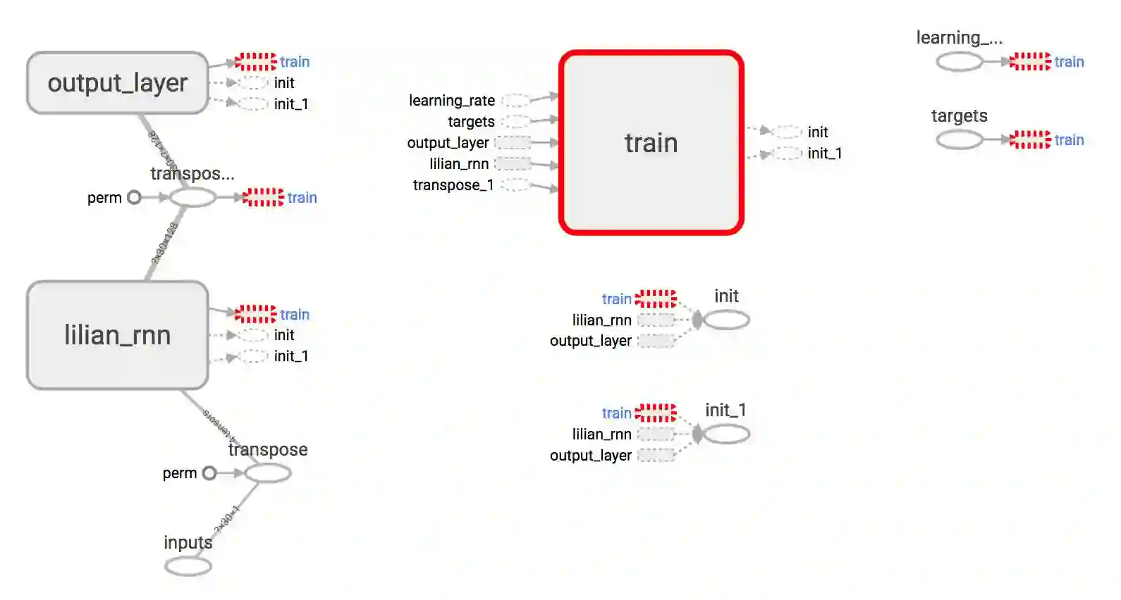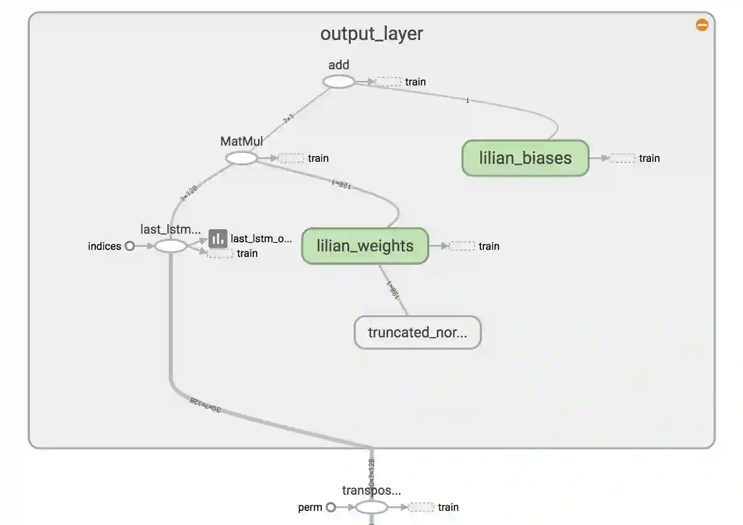 (7) tf.transpose converts the outputs from the dimension (batch_size, num_steps, lstm_size) to (num_steps, batch_size, lstm_size). Then the last output is picked.(用手可以滑动代码)