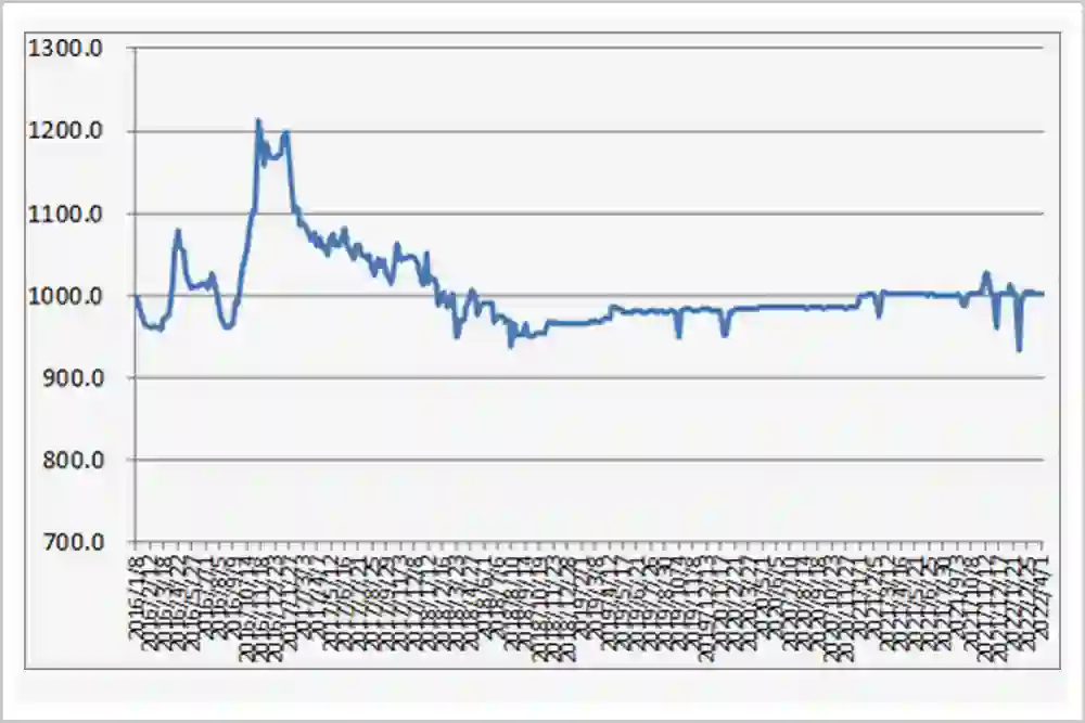 从2016年-2022年各周中国公路物流运价指数(下图)可以看出,自2016年下半年以来,公路物流运价呈下行趋势。