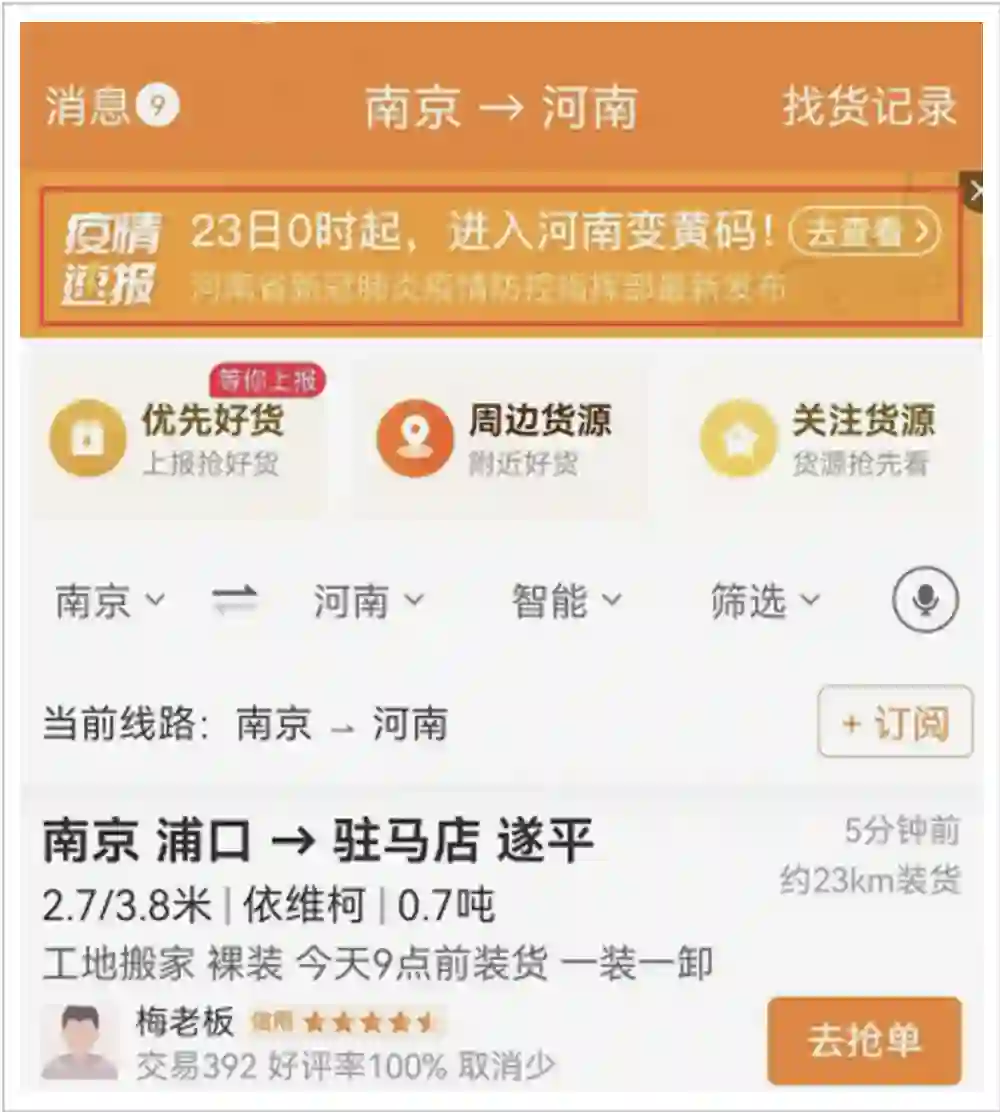 他通过对比发现,某互联网平台的货源,比自己找的货源,利润低了15%。