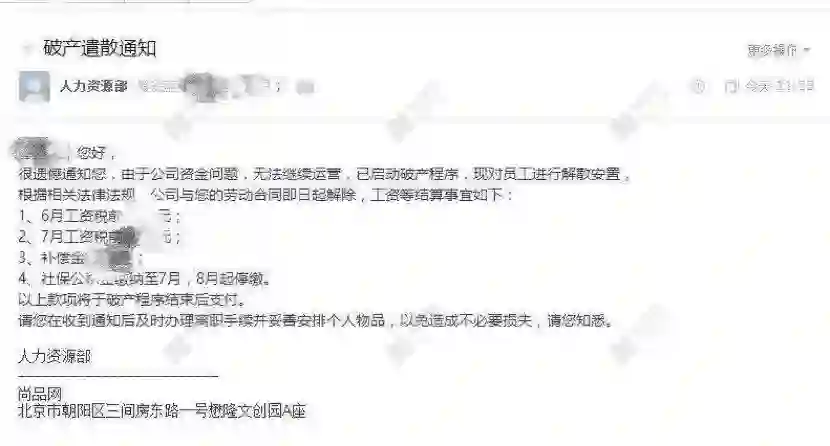 尚品网内部下发破产遣散通知 关联公司成立清算组
