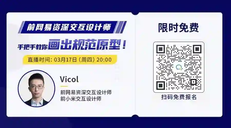 ⭕3月17日(周四)20:00,前网易资深交互设计师、前小米交互设计师@Vicol,1节课带你玩转Axure,手把手教你画出规范原型!