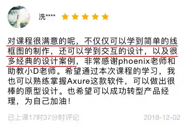 6周Axure实战班通过4500+学员验证和反馈,迭代了多次,课程通俗易懂。坐公交、地铁或者吃饭的时候都能听,充分利用碎片时间。