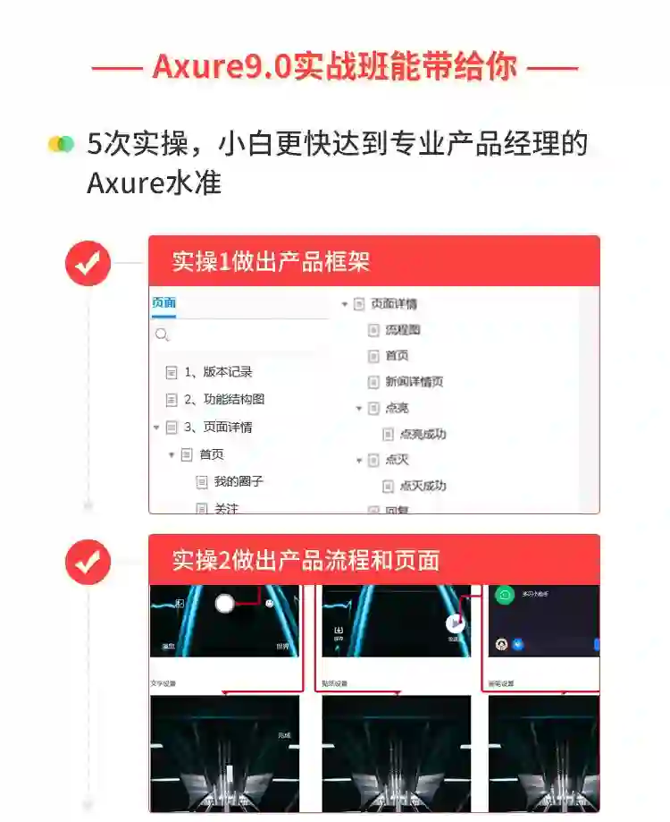 为了能够让产品新人通过高效的方法,快速实现产品原型,满足产品工作所需,Axure实战班采用录播+直播的形式,系统学习Axure操作和原型思维。