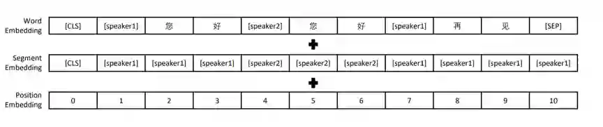该模型拥有12层Transformer结构,我们按字分词,字典大小13088,字向量维度768,最长上下文长度为513。我们沿用TransferTransfo的方式对对话进行建模,即把对话历史拼接为长文本,并使用段分割向量加以区分。具体来说:我们使用[CLS]字符标志文本起始,在段落后使用[SEP]字符表示段落结束,在段落中对相邻轮次对话使用[speaker1]、[speaker2]交替分割,并在segment embedding中使用[speaker1]、[speaker2]进行编码。图1为输入数据示例。