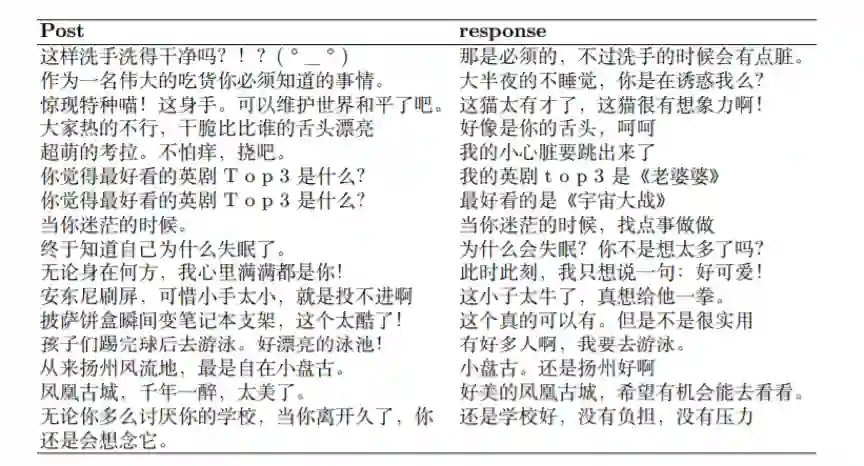 我们同时注意到,来自社交媒体的对话数据中存在各种各样的噪音(表1),为了保证LCCC中对话数据的质量,我们设计了如下数据获取和清洗策略: