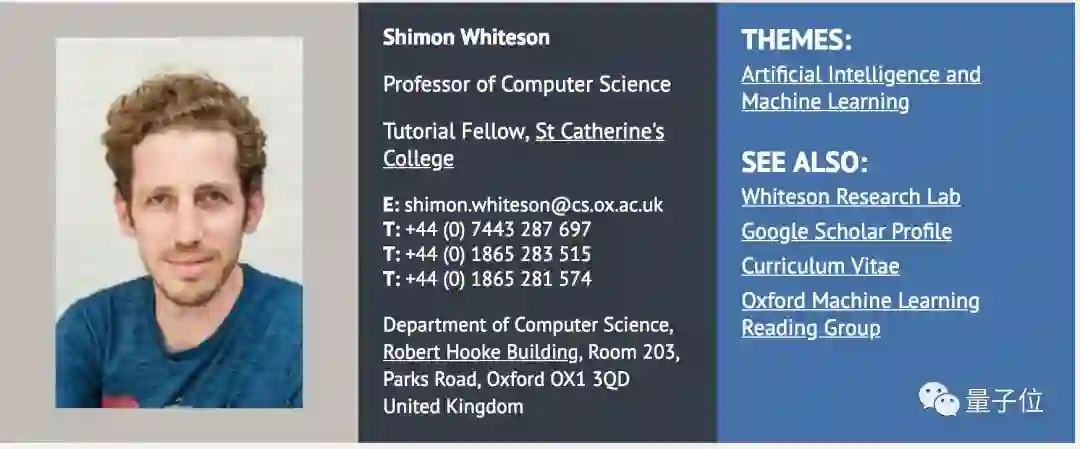 希蒙·怀特森,是牛津大学计算机系的教授,专注于人工智能和机器学习领域。强化学习、让智能体跟着演示学习都是他所研究的课题。
