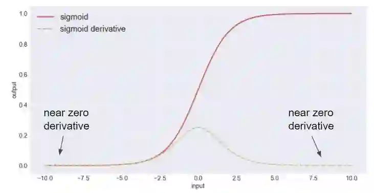 上述实验利用了常用的ReLu激活功能。 虽然不能像上面所示一样抵挡梯度消失带来的效应,ReLu激活比Sigmoid或tanh激活功能要好得多。 Sigmoid激活函数对梯度消失很无力。在更大的数值(非常正或负)时,sigmoid函数“饱和” 即S形函数的导数接近零。 当越来越多节点饱和时,更新次数减少,网络停止训练。