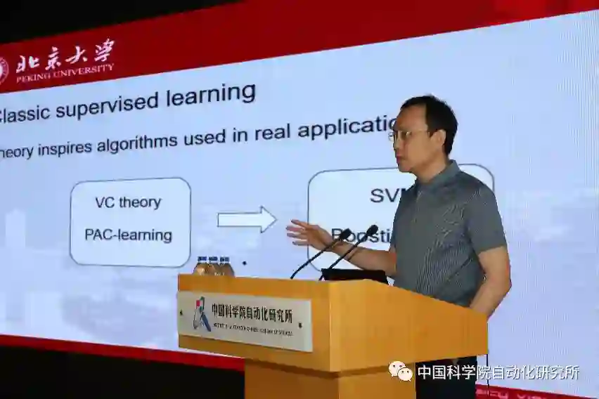 北京大学王立威教授做题为“机器学习理论”的主题报告。报告从机器学习理论过去几十年主要成果、现在或者未来最基本问题是什么这两个方面展开,介绍了经典的监督学习和强化学习理论,如VC理论、PAC学习、TD learning等,探讨了深度学习表示的有效性、非凸优化的收敛性、小样本分布式强化学习等机器学习领域前沿研究方向。