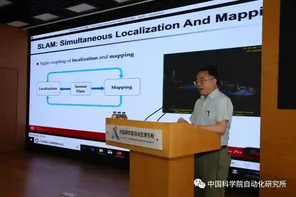 北京大学查红彬教授做题为“SLAM与在线学习”的主题报告。报告首先介绍了动态视觉和SLAM的基本概念和研究历史,并解释了两者之间的关系。然后总结了当前SLAM研究中存在的基本问题,如计算成本高、误差累积严重、缺乏有效的结构信息指导等。最后他提出通过在线学习、利用传感器数据流的连续性、预测和映射机制等方式来提高算法的性能和效力。