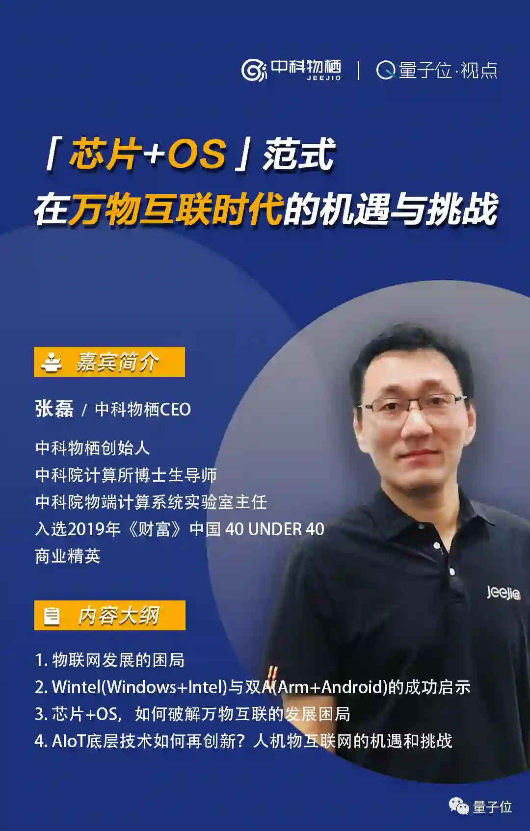 围绕人机物互联网的发展、底层技术及“芯片+OS”范式等内容中科物栖创始人兼CEO张磊博士在「量子位·视点」直播中分享了他的从业经验和观点。
