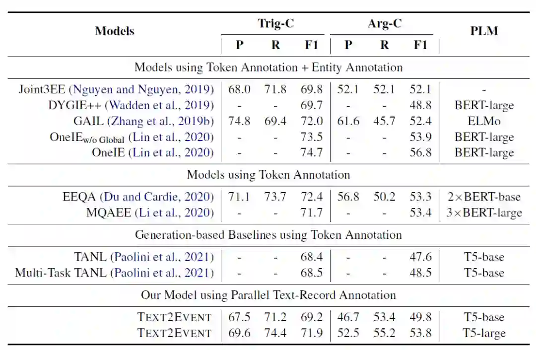 [9] TEXT2EVENT: Controllable Sequence-to-Structure Generation for End-to-end Event Extraction. ACL 2021