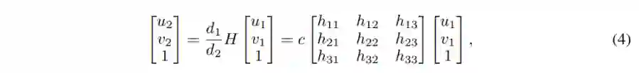 (a) 完整投影:如果一个点(u1, v1)从一张图像投影到另一张图像的(u2, v2),那么它将满足:
