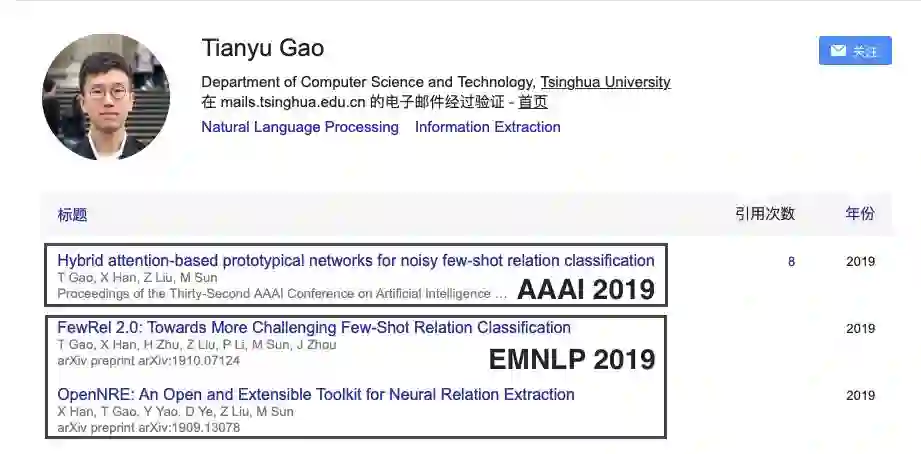 此外还有同在计算机系的杜政晓、翁家翌、王晓智等人。比如和高天宇的经历相似的王晓智,在国际顶级学术会议 COLING2018、NAACL-HLT2019 和 NAACL-HLT 2019 上各以共同一作身份发表一篇文章,他与高天宇均为清华大学计算机系副教授刘知远的学生,两人也共同入选了今年 4 月份的清华大学学生「未来学者计划」,同样在 2019 年夏季前往 MILA 跟随唐建从事科学研究。