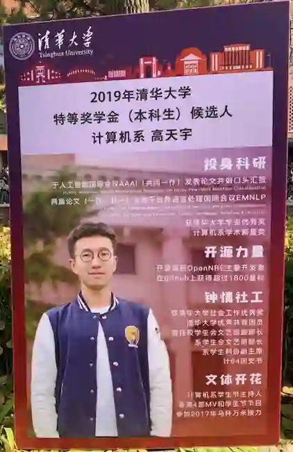 高天宇来自计算机系计 64 班,2018 年 1 月加入清华大学自然语言处理实验室,从事的是自然语言处理、机器学习方面的研究内容。