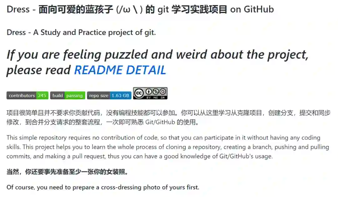 更有意思的是,有人提醒说,GitHub 上几屏都拉不到底的女装教程「Dress」也被冻在了北极: