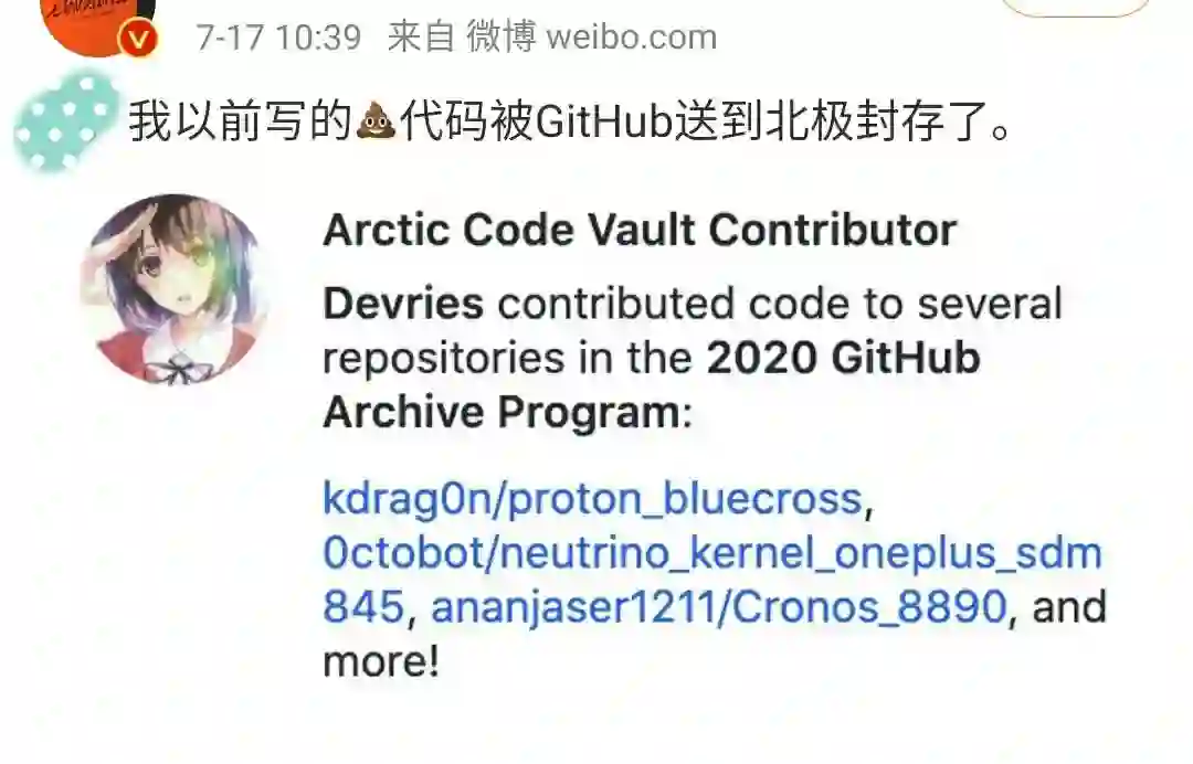 在 GitHub 公布代码已经安全抵达北极的消息之后,开发者们纷纷晒出自己的代码被选中的喜讯。