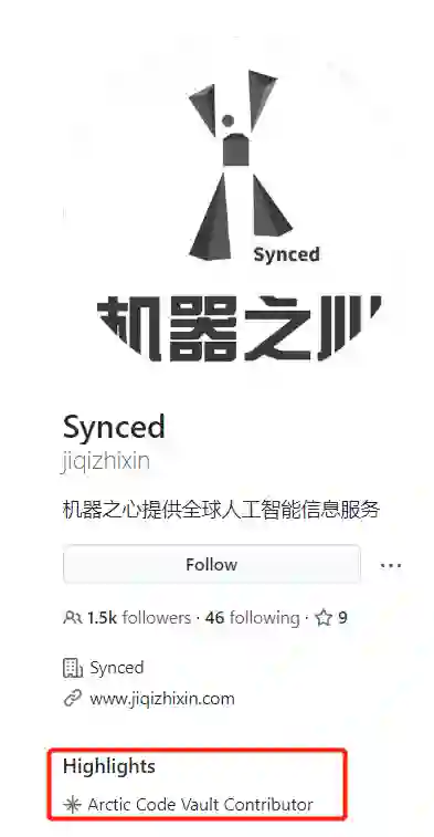 为了表彰广大开发者对开源项目的贡献,GitHub 设计了荣誉徽章(图上的「Highlights:Arctic Code Vault Contributor」字样)。如果你的 GitHub 个人主页下方也有这个徽章,表明你的代码去了北极。机器之心的已经去了。