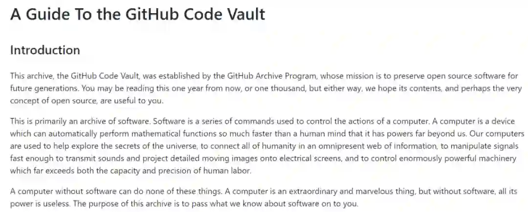 有人在 GitHub 的这份指南中读出了《流浪地球》般的史诗味道,感兴趣的读者可以前去阅读全文:https://github.com/github/archive-program/blob/master/GUIDE.md。