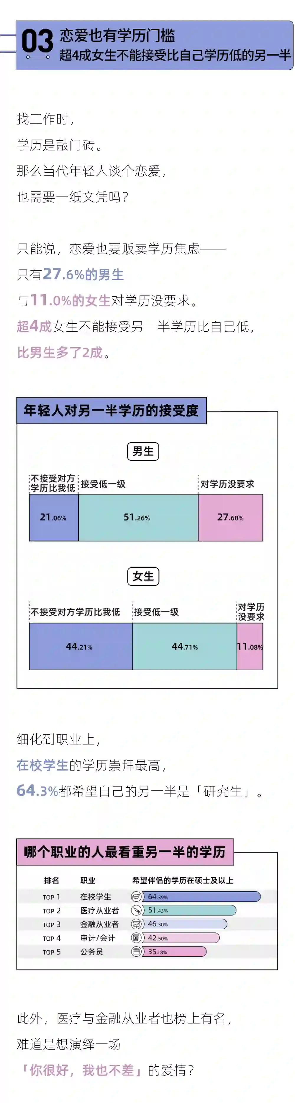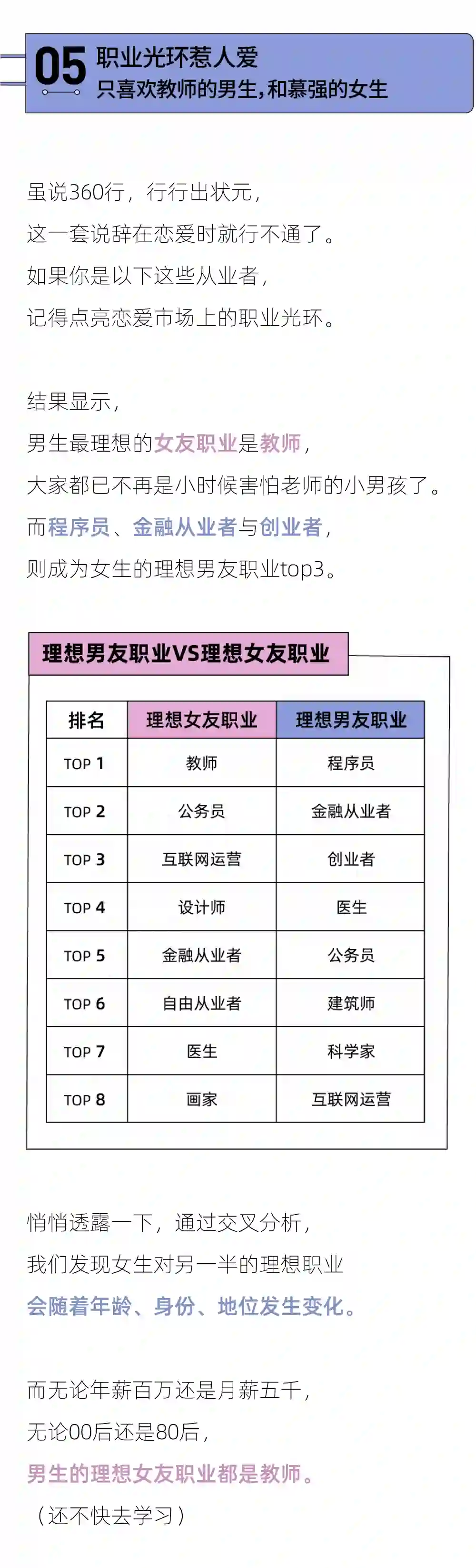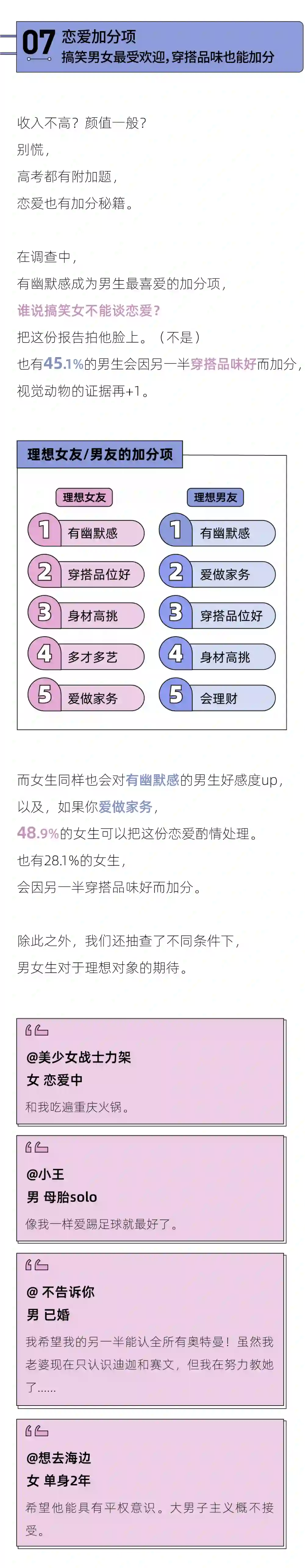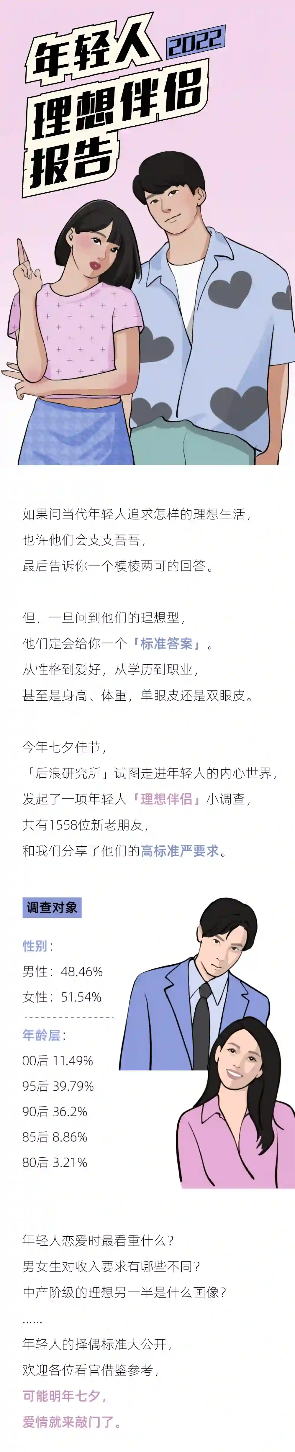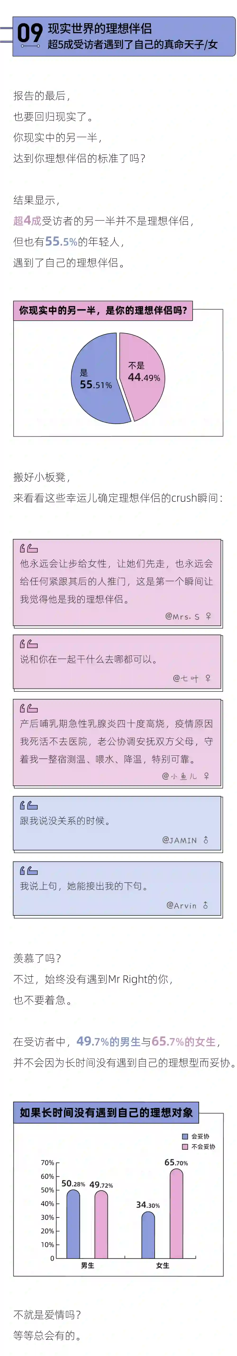 在读过这篇「理想伴侣」报告后,你是否更加明确了自己的内心?哪些标准是你愿意在爱情中欣然妥协的?那些标准是你在择偶中一定要坚守的?相信你在心里已经有了自己的答案。