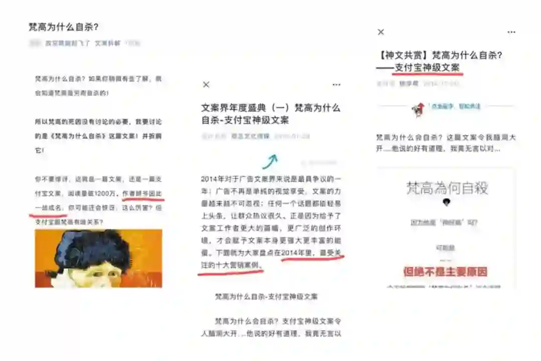 他在微博上为支付宝写的长文案《梵高为什么自杀》,一投放就引爆话题,阅读量破1200万,一战成名。