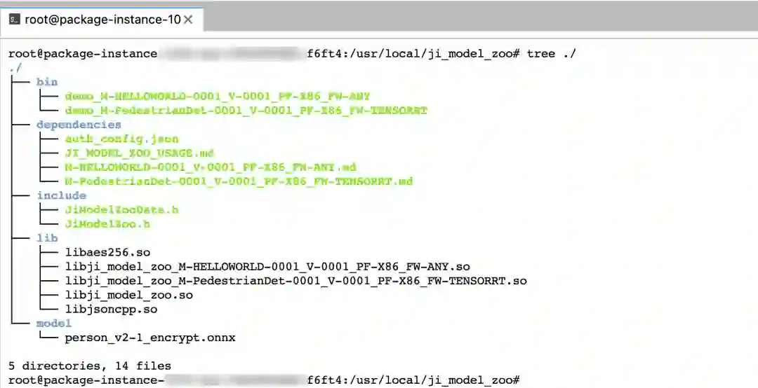 安装完成后,对应的基础算法将会被安装到编码环境的 /usr/local/ji_model_zoo/ 目录下。