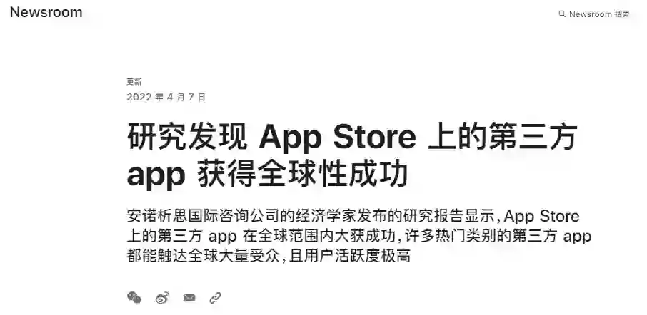 研究指出,在社交、美食、旅行和约会服务等许多类别中,第三方 App是用户唯一的选择,因为苹果不在这些类别中竞争。报告还指出,在大多数应用类型中,苹果的 App“在人气方面黯然失色,只占用了相对较小的份额”。