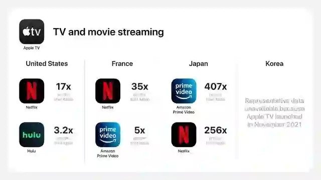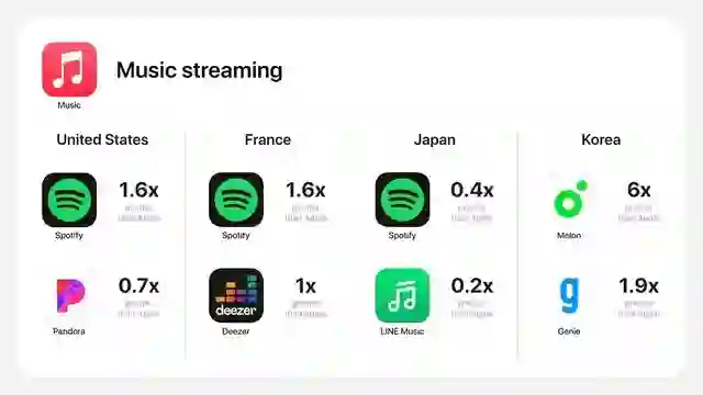 比如,在美国,就日活用户和使用时长方面,Spotify 是 Apple Music 的 1.6 倍多,Netflix 比 Apple TV + 多 17 倍。报告中写道: “苹果自己的 App 很少是某一特定类型中最受欢迎的,通常只占应用程序使用量的一小部分。”