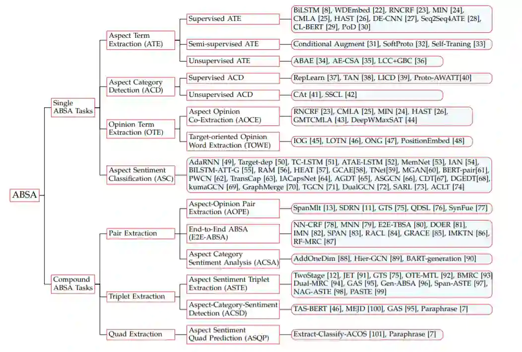 方面级情感分析是大家关注的一个问题,最近来自香港中文大学的学者发布了最新《基于Aspect的情感分析综述论文》系统介绍了ABSA方法体系。