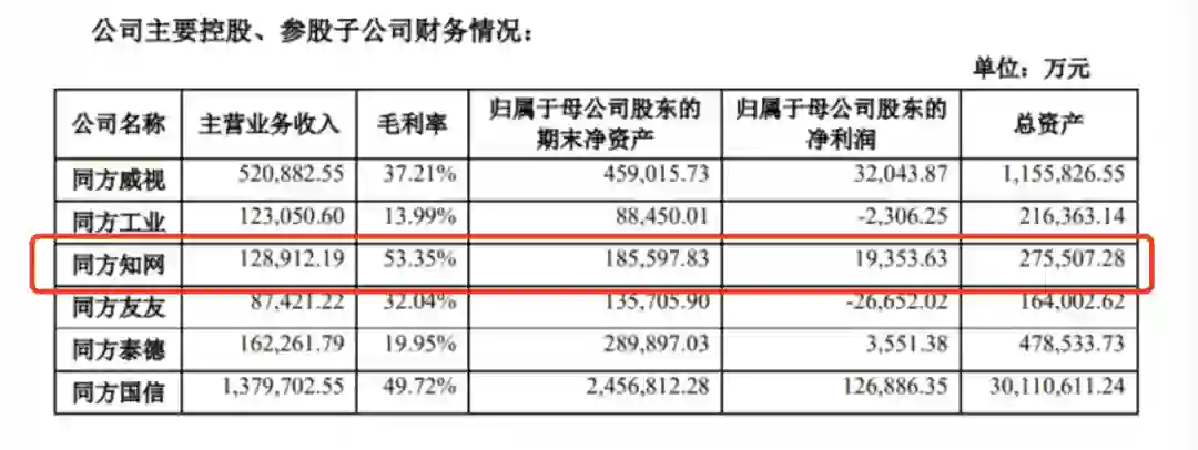 而在同方股份2021年的财报数据中,知网在该财年的主营业务收入达到了12.89亿元。